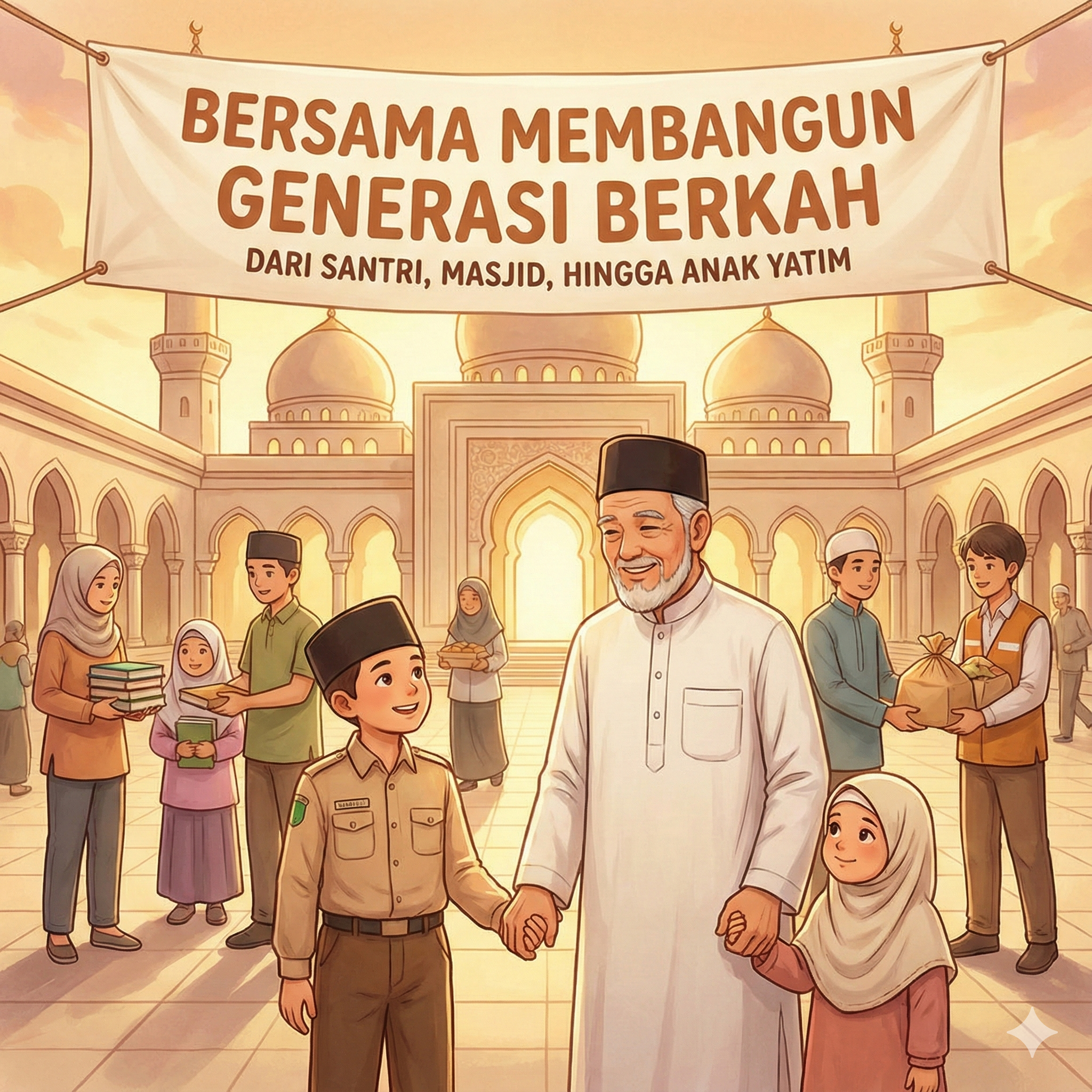 Program dukungan santri, pemberdayaan guru ngaji, serta gerakan cahaya Al-Qur’an menjadi bagian penting dalam membentuk generasi yang kuat secara spiritual dan intelektual. Sementara itu, kegiatan bersih masjid menjaga rumah Allah tetap terawat, nyaman, dan menjadi pusat ketenteraman bagi jamaah. Tidak ketinggalan, santunan anak yatim menjadi wujud kepedulian yang memberi mereka tempat berlindung, harapan, dan senyum yang lebih cerah.